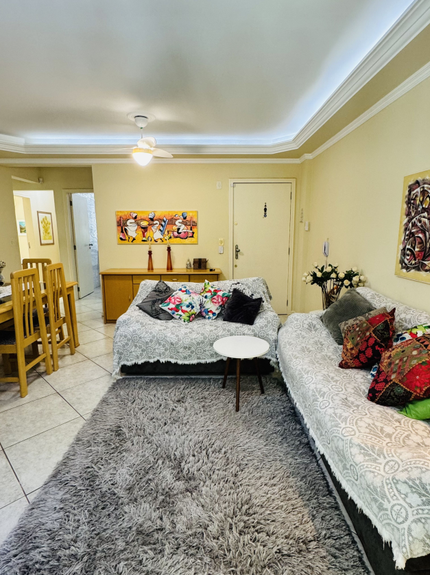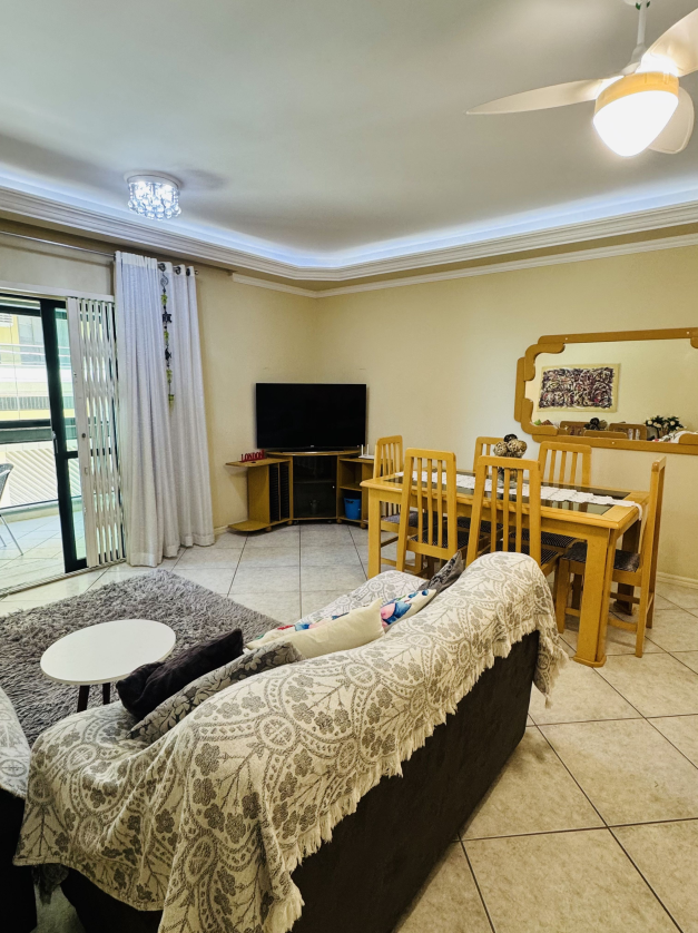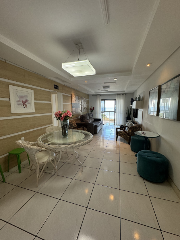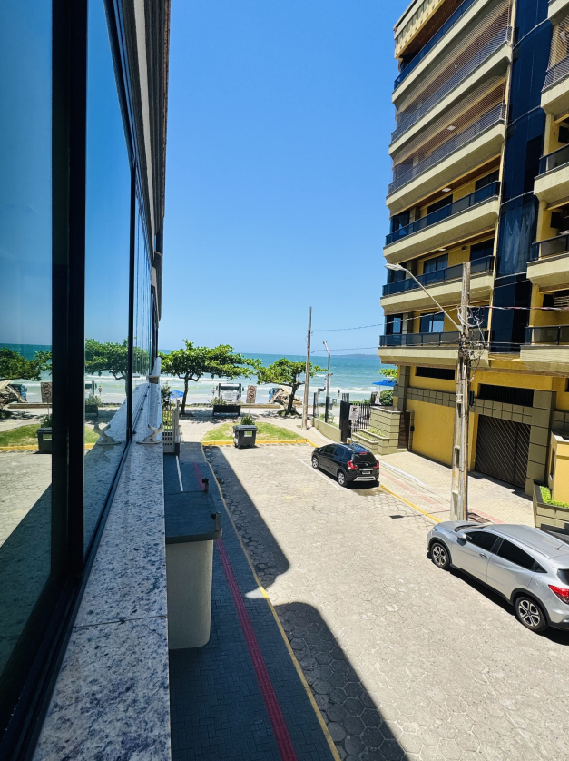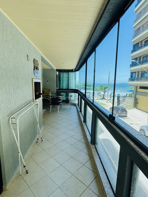 Apartamento pé na areia na Meia Praia, vista lateral mar, 3 quartos, sendo 1 suíte, Sala, cozinha, sala de jantar, Wi-Fi, sacada com churrasqueira, lavanderia com máquina de lavar, 1 vaga de garagem Apto 103
