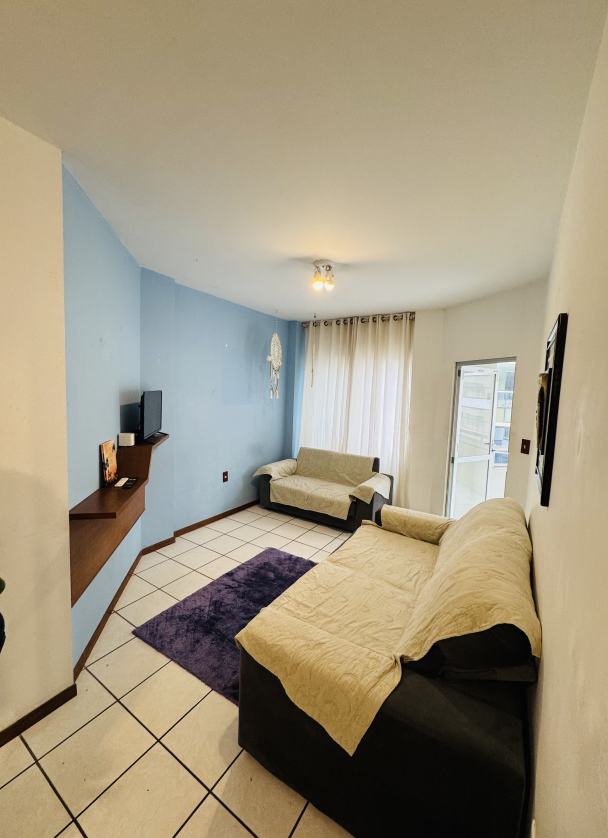 Apartamento na Meia Praia, 2 quartos, sendo 1 suite, sacada com churrasqueira, sala, cozinha, sala de jantar, lavanderia com máquina de lavar, 260m da praia