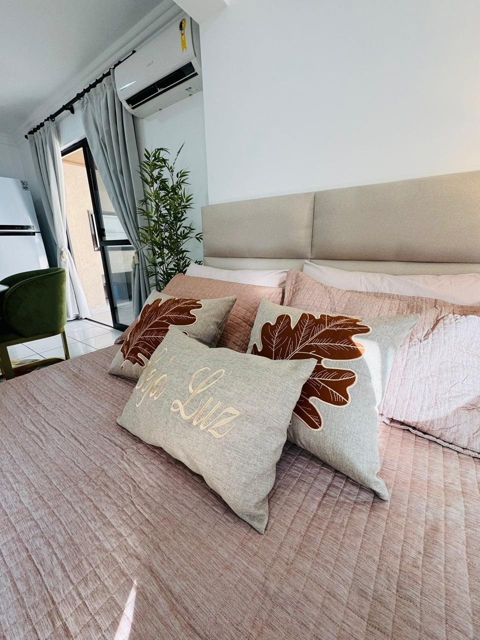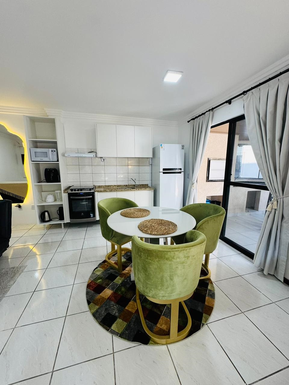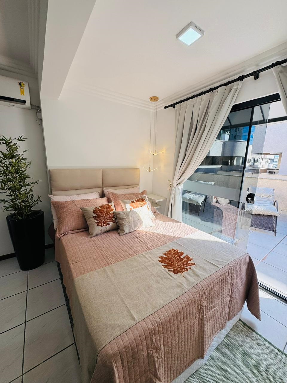 Loft com vista para o mar na Meia Praia, quarto com cama de casal, sala e cozinha, sacada com churrasqueira, Wi-Fi, tv, 1 vaga de garagem, ótima localização