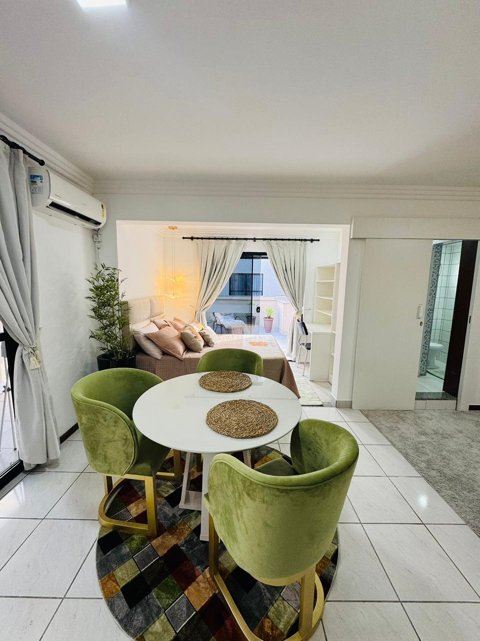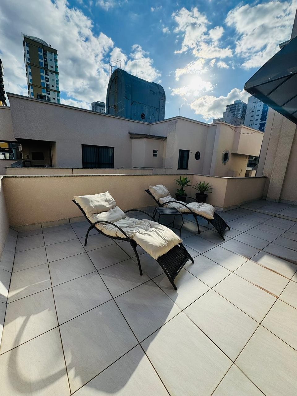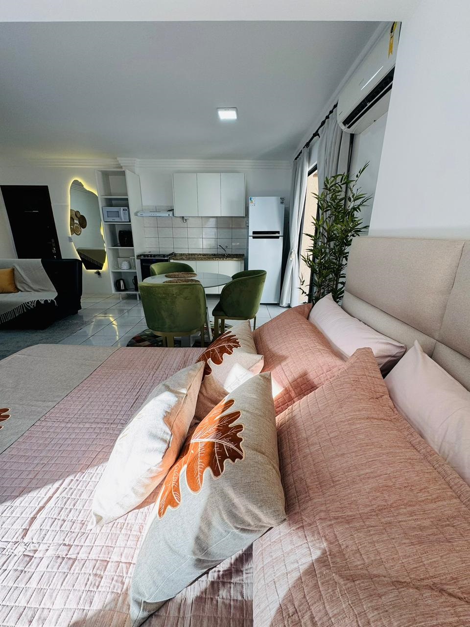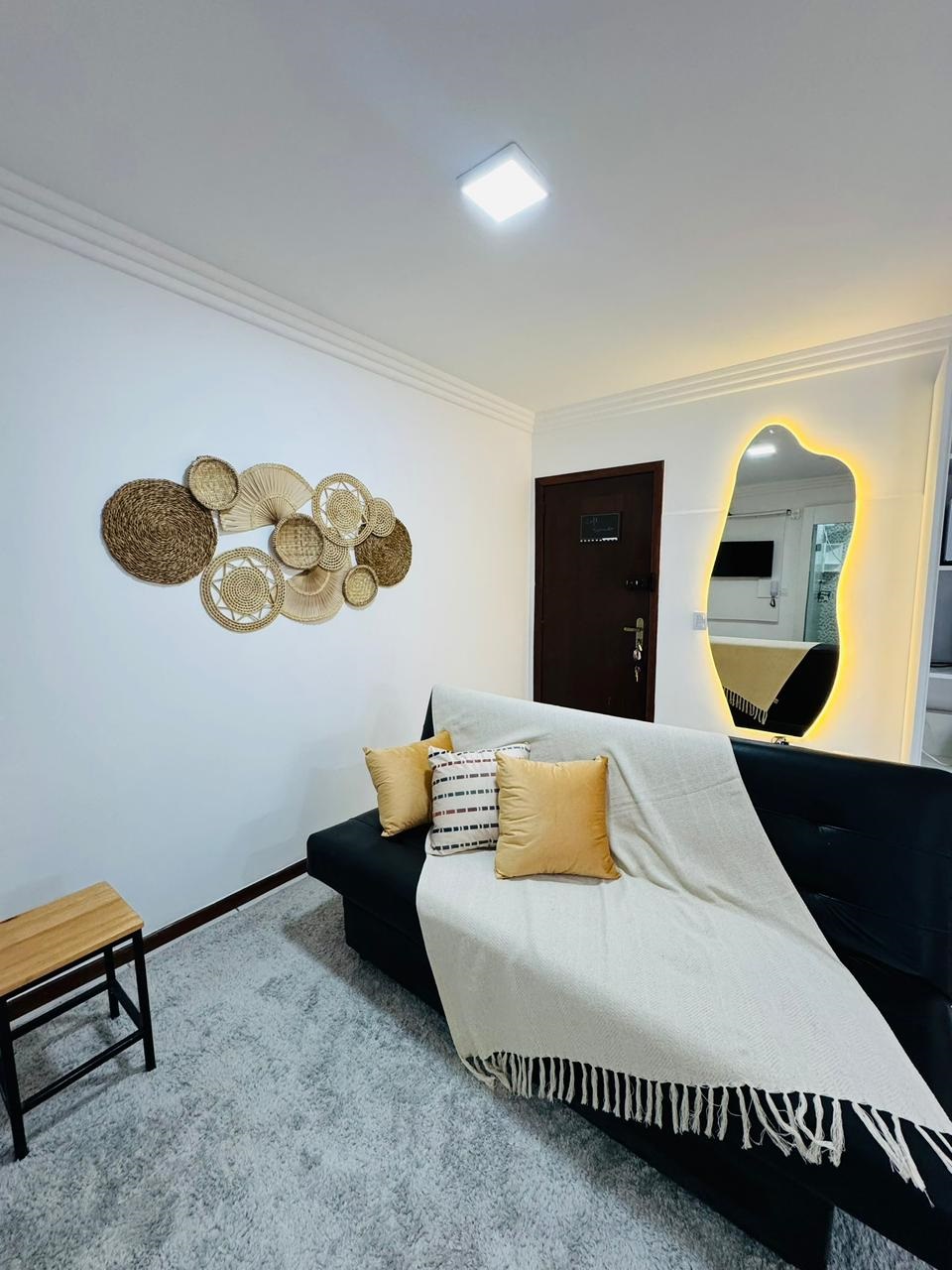 Loft com vista para o mar na Meia Praia, quarto com cama de casal, sala e cozinha, sacada com churrasqueira, Wi-Fi, tv, 1 vaga de garagem, ótima localização